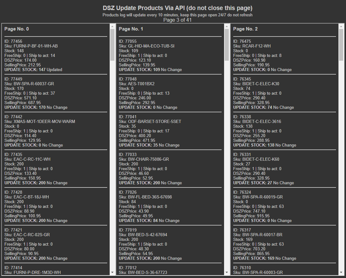 - Once all products are complety updated the process will begin again, always keeping your products price and stock up to date.