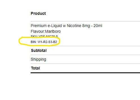 - To view the bin, create a test order with the product you just added the BIN to and save.