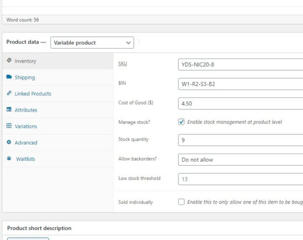 Note: This plugin adds a BIN number to the parent product as well as product variations (new in v9.1).